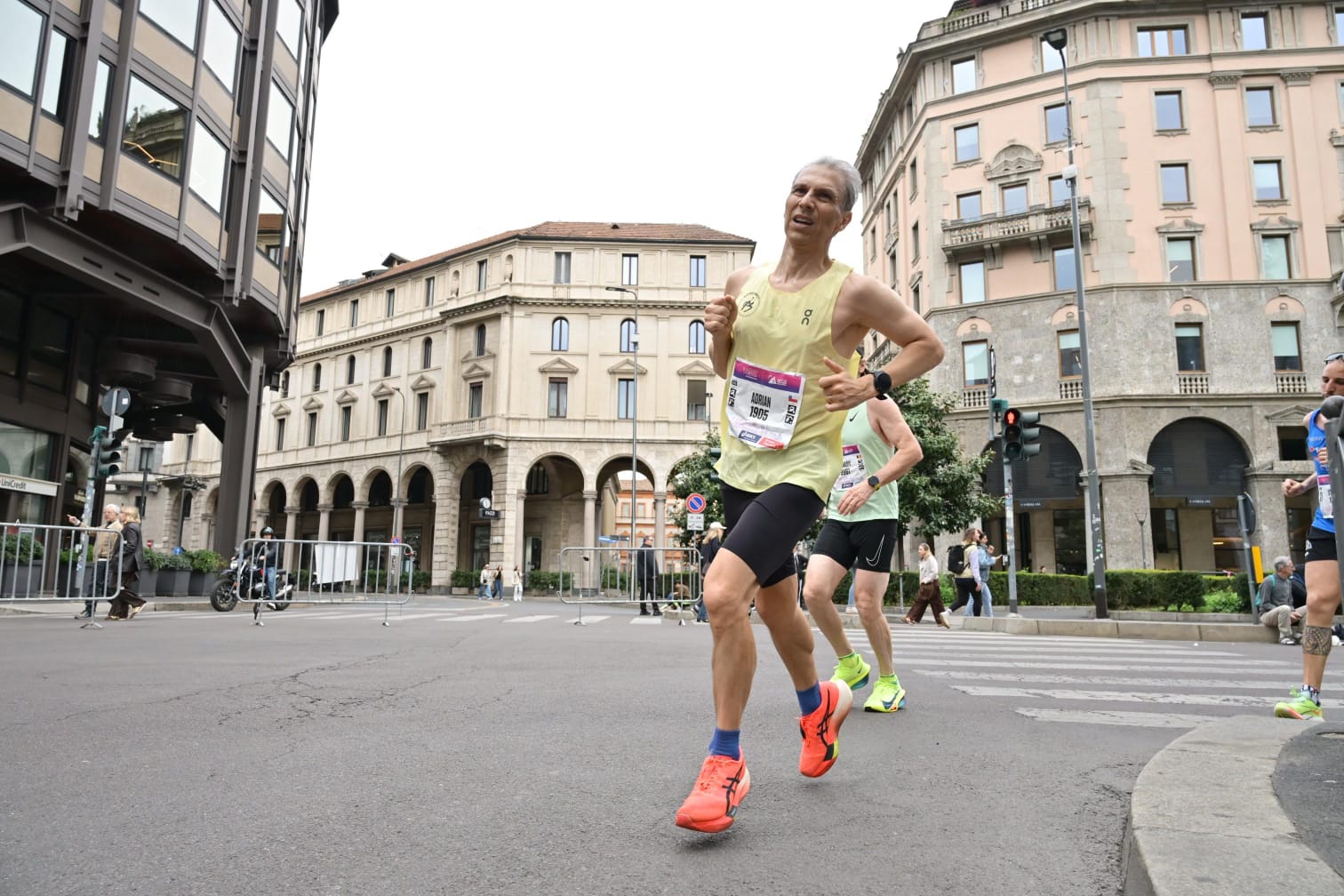 Empecé a pasar corredores y cuando soplaba mucho viento me parapetaba tras quienes me precedían para luego saltar al siguiente grupo. Lo peor eran los adoquines, cada cruce de avenidas estaba conformado por grandes adoquines más rieles de tranvía, tuve que mantener mucha concentración. En el 35K ingresamos al moderno barrio de City Life con sus tres icónicas torres: La recta, la curva y la torcida.