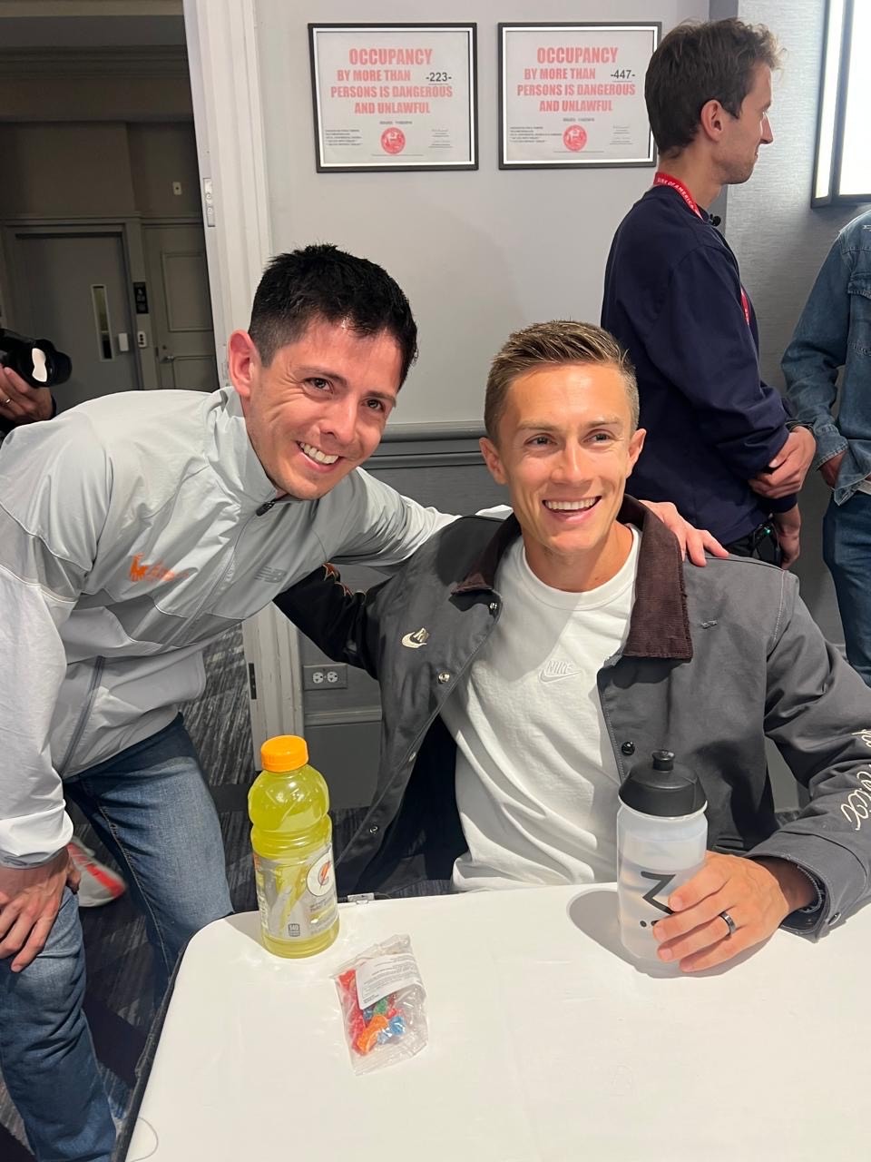 Tuve la oportunidad de asistir a la conferencia de prensa —gracias a mi roommate Roberto Núñez por la invitación— donde se presentaron los atletas élite. Pude conocer a Conner Mantz (a quien admiro mucho), Kiplimo, Korir, Clayton Young y otros más. No podía creer que estaba frente a corredores que usualmente uno solo ve por televisión o redes sociales.