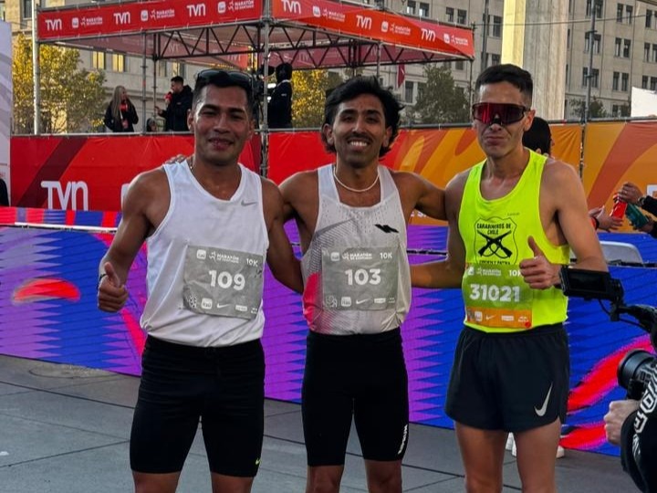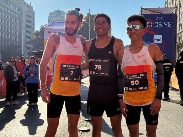 Este año Carlos mejoró su marca con 1:03:21 y le alcanzó para entrar en el podio, siendo el tercero general y mejor chileno en la distancia.