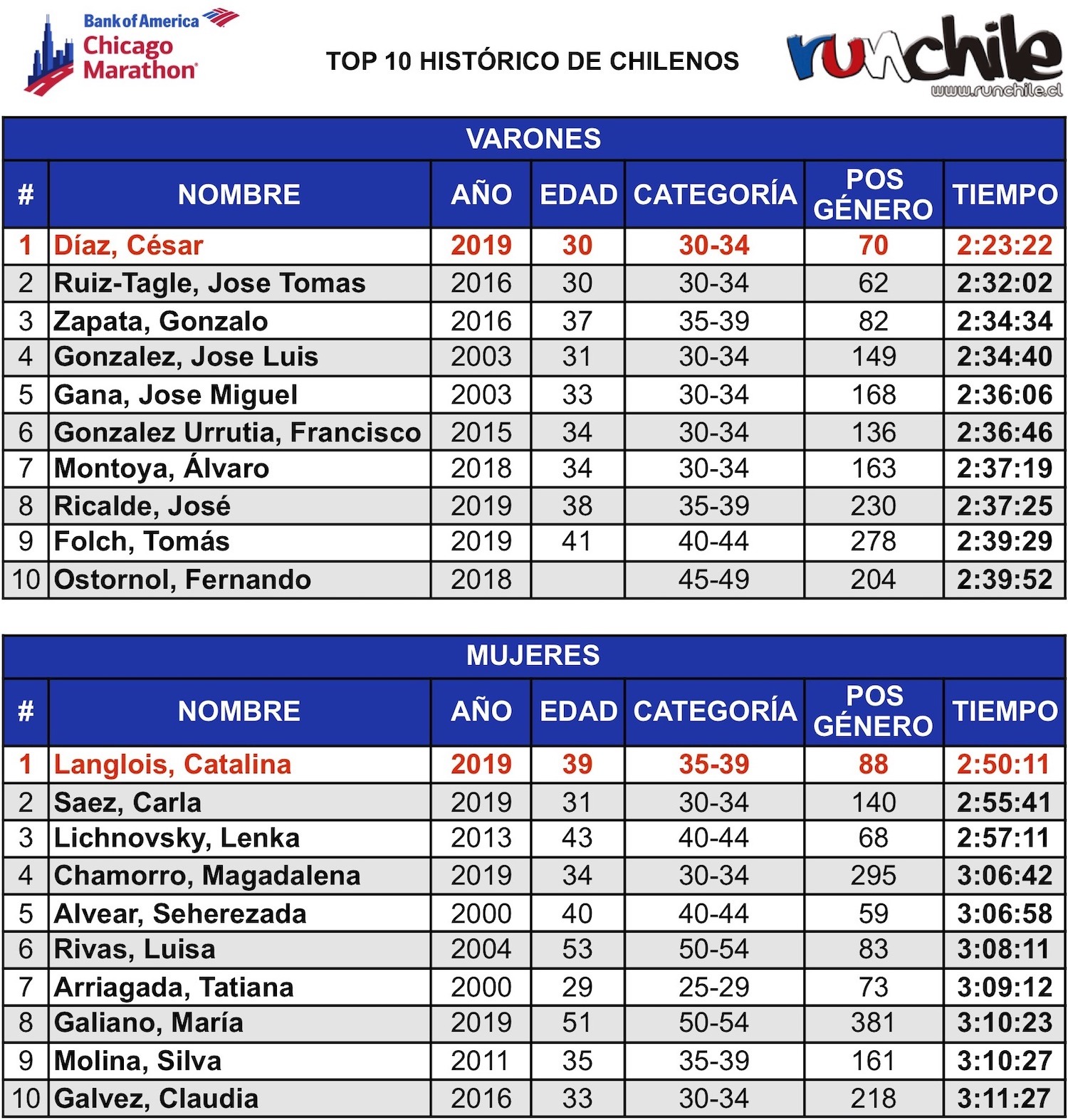A continuación puedes revisar como quedó el Top10 histórico, tanto en hombres como en mujeres, felicitaciones a todos!!!