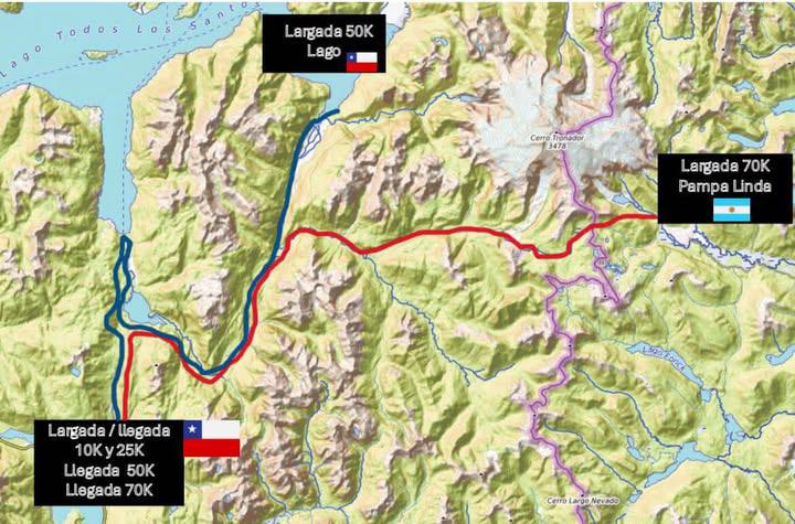 - 5:00 horas: Largada de los 70K que comienza en la Pampa Linda, Bariloche (Argentina) y cruza la Cordillera de Los Andes para llegar a Ralún, Puerto Varas (Chile), es la distancia principal y el Cerro Tronador es el escenario protagonista del circuito.